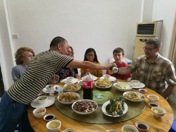 In the evening, the SWI prepared a big dinner to entertain the guests from afar in the dining room. The American family were quite glad to enjoy a a meal of Lianjiang local style, which let them feel at their own home.