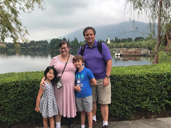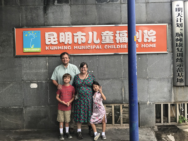 Guan Yuemin is a very nice name. Guan is a common surname shared by many children lived in the Kunming CWI, and Yuemin represents a happy and smart girl. This name given to the little girl by the Kunming CWI in 2011 was full of good expectations for her future life. Although she was abandoned after birth, love without borders. Little Yuemin was firstly taken the utmost care of by a foster family until more than one year old. In November 2012, Shelby and husband Kevin from America came to the Kunming orphanage to bring Yuemin back home for carefully raising after completing all adoption procedures.