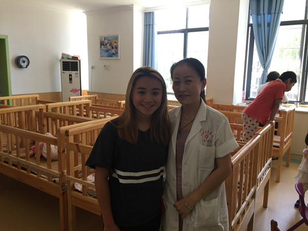 On the morning of July 17th, our professional guide picked up Rebecca from the hotel in Changsha, and then head to the Xiangtan SWI. The staff in the orphanage received them intimately and led them to look around the Children’s Zone and Activity Room in the SWI. Rebecca handed over the presents she brought to the children personally and interacted with them. Afterwards, they enjoyed a lunch together in the cafeteria. At this point the director got here to have a talk with Rebecca in a cordial atmosphere and confirm the original address of the place where she was found by people. After lunch, Rebecca visited the picked up place and local attraction Wanlou.