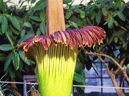 Konjak is native to Indonesian Sumatra tropical rainforest region, it is widely regarded as the biggest flower in the world, which can live as long as 150 years, however, it can only in blossom twice to three times. Konjak also has a terrifying name, CannibalPlant, but it doesn't swallow human beings actually. It got such a name for its big size for 2-3 meters, and the diameter of the flower can reach 1 meter, when it blooming, it gives out strong stink, like the smell of corpse roting.