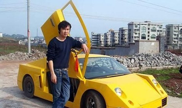 A wannabe Lambourghini made at home, cost the designer/maker more than US$3000, he was a middle school graduate, born in 1985, as a truck driver in Linwu County, Chenzhou, Hunan Province.
