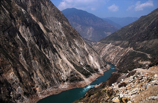 About one hundred kilometers northwest of Lijiang recent city lying between Jade Dragon Snow Mountain and Haba Snow Mountain is Tiger Leaping Gorge, which is believed to be the deepest gorge within the world. From the highest of the gorge you look down the steeply angled mountain sides to the dashing Golden Sands (Jingsha) River with its eighteen frothing rapids over two hundred meters below.
