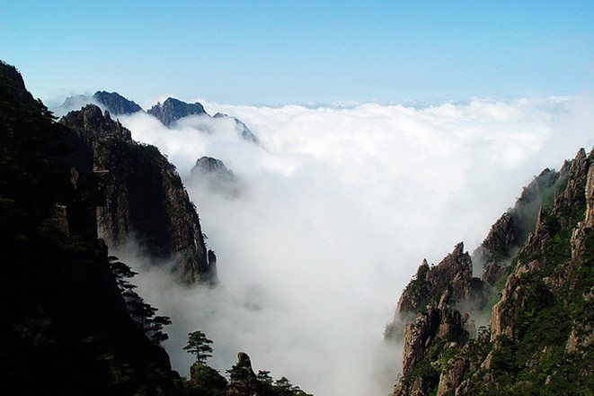 Mt. Huangshan is the model of Chinese ink paintings, most well-known for venerable pine trees, the steep mountains, ocean-like layered clouds and multi-shaped rocks.
